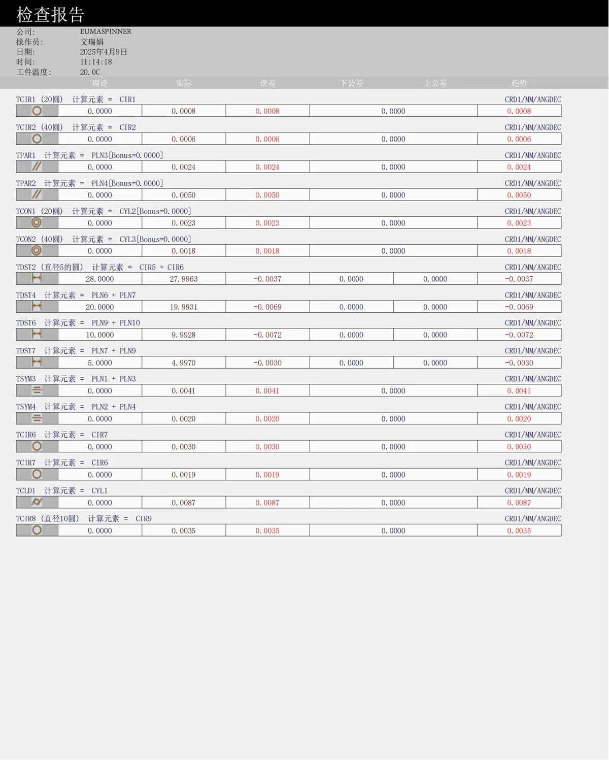 Test laser e accuratezza CMM del pezzo 1